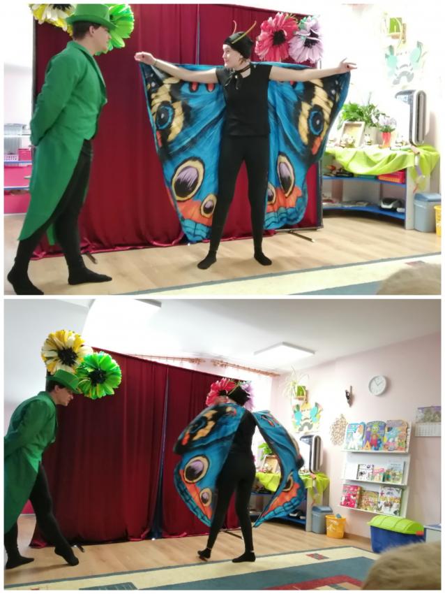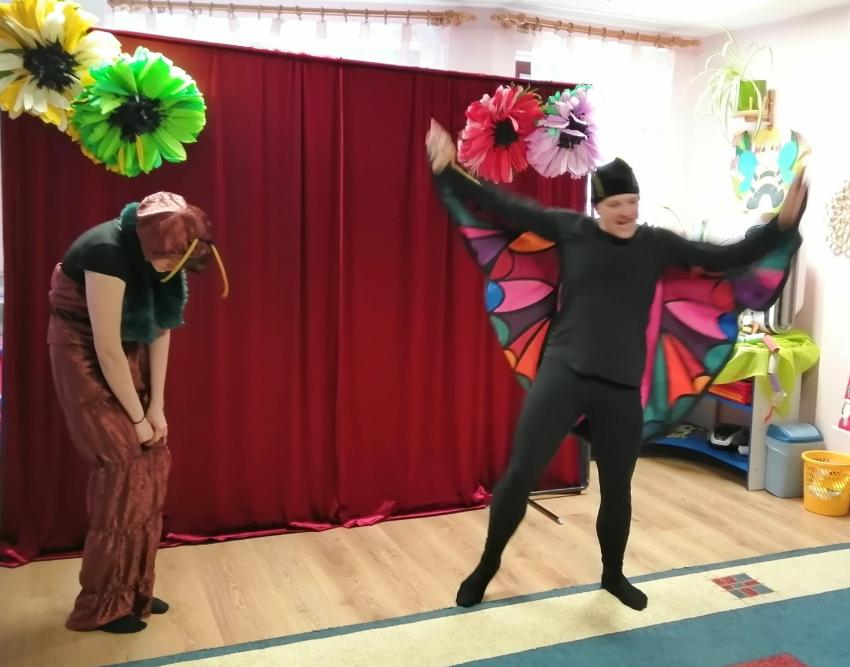 W poniedziałek nasze przedszkole odwiedzili aktorzy z Teatru Stańczyk z przepięknym przedstawieniem pt. „Gąsienica Matylda – co piszczy w trawie”. Bajka pełna morałów dotyczących samoakceptacji. Tytułowa gąsienica Matylda, aby stać się przepięknym motylem musi najpierw zrozumieć, że jej pięknem nie są kolorowe skrzydła, ale jej zachowanie i wnętrze.Dodatkowym atutem była sceneria i piękne kostiumy aktorów, którzy wcielali się w rolę mieszkańców łąki. Występ bardzo podobał się przedszkolakom i sprawił im mnóstwo radości.
