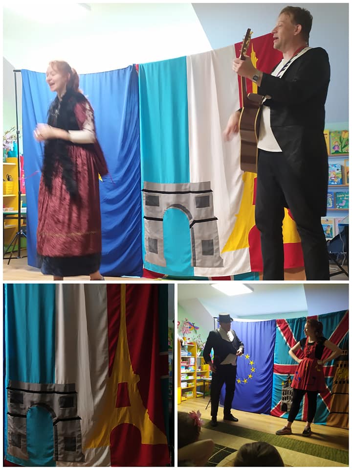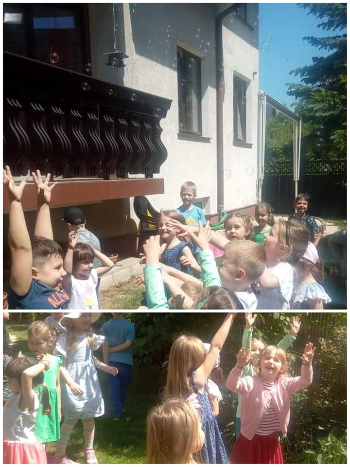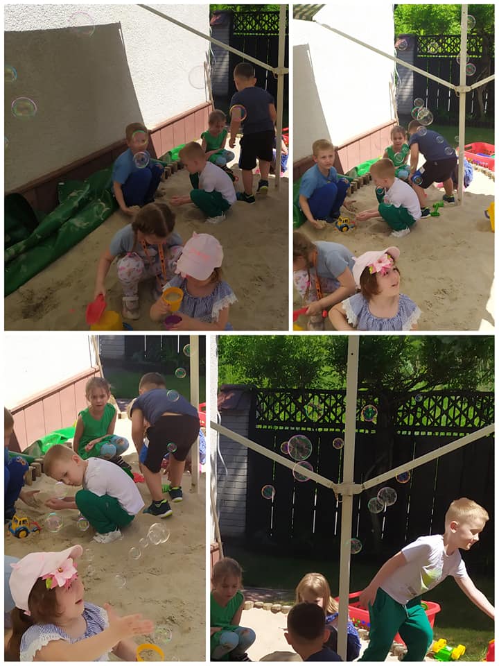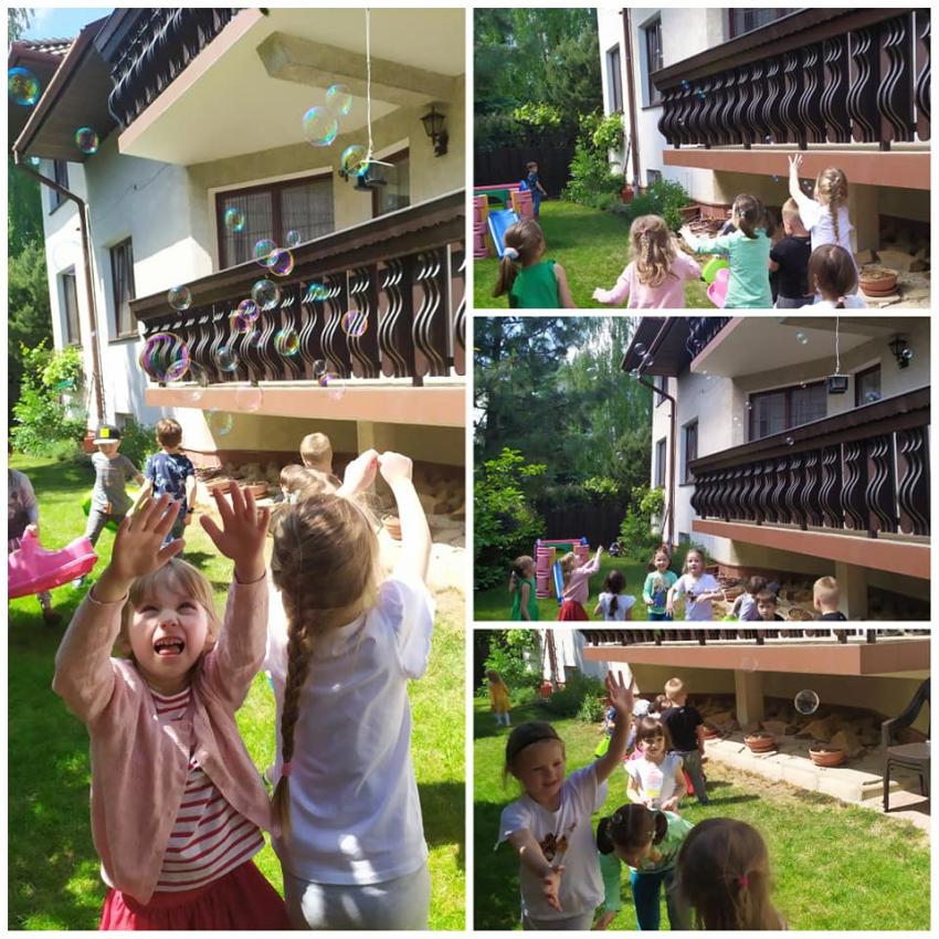 Jak co roku Dzień Dziecka był u nas obchodzony w bardzo radosnej atmosferze. Rozpoczęliśmy wesołymi zabawami ruchowymi, muzycznymi, z balonami. W ogrodzie przedszkolnym bawiliśmy się z bańkami mydlanymi - ileż było śmiechu! Na obiad podana została uwielbiana przez dzieci pizza! Zwieńczeniem Dnia Dziecka był przyjazd teatrzyku z przedstawieniem pt. "Muzyczna podróż po Europie". Poznaliśmy kraje tj. Wielka Brytania, Francja i Włochy - usłyszeliśmy charakterystyczne piosenki, poznaliśmy flagi i ważne zabytki oraz ciekawostki związane z tymi państwami. Każde dziecko przy wyjściu z przedszkola otrzymało również symboliczny podarunek.