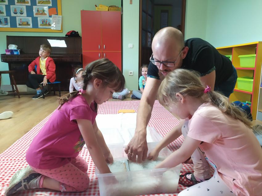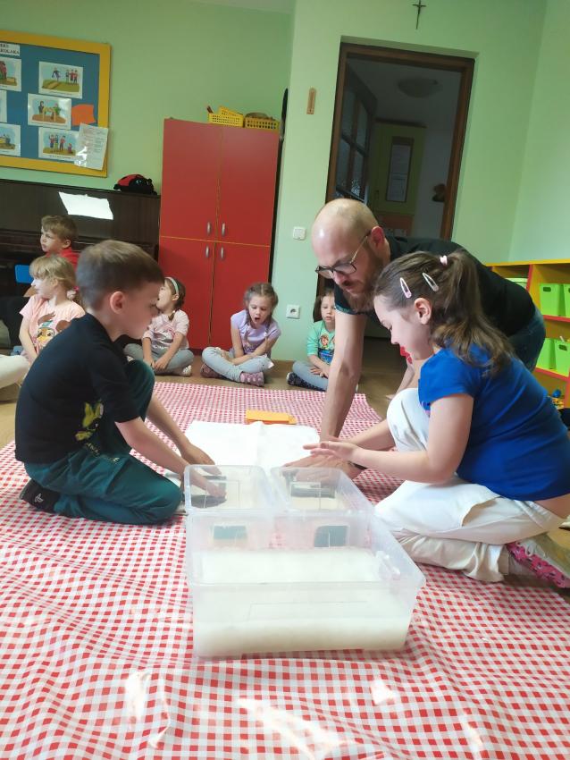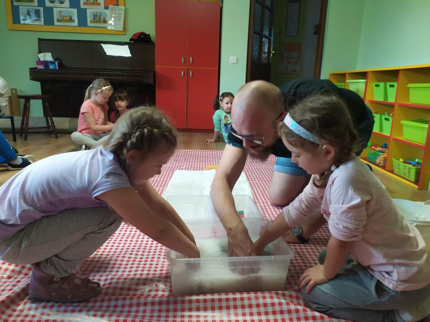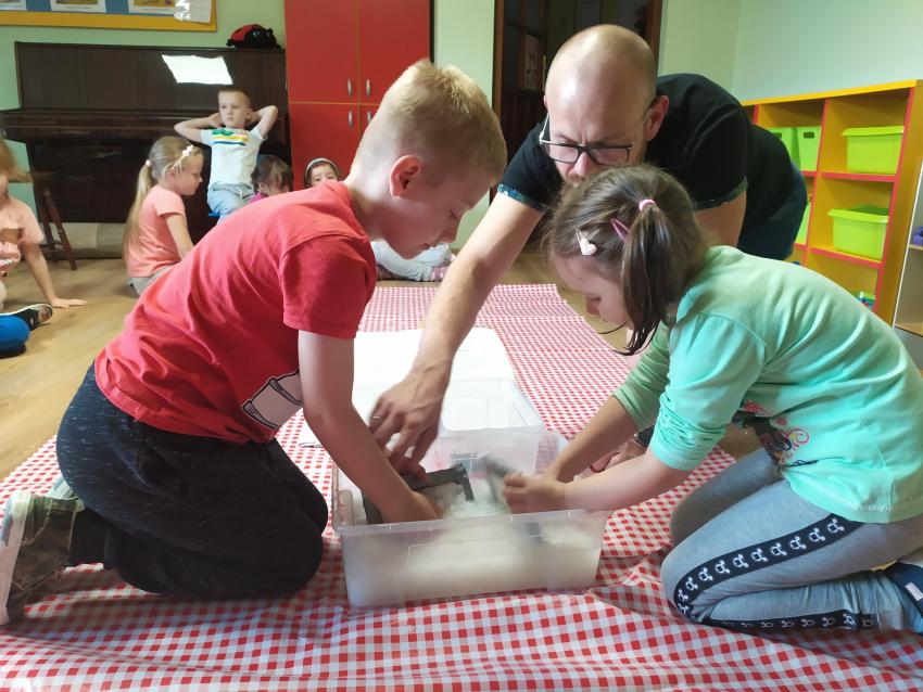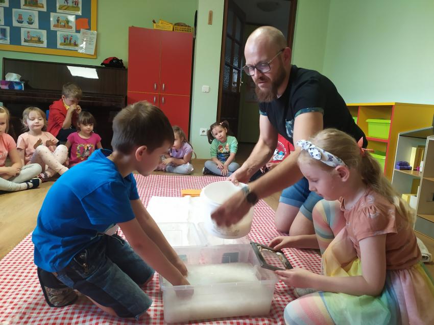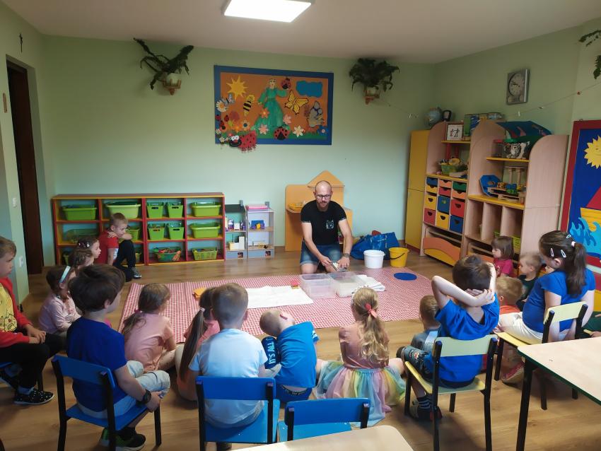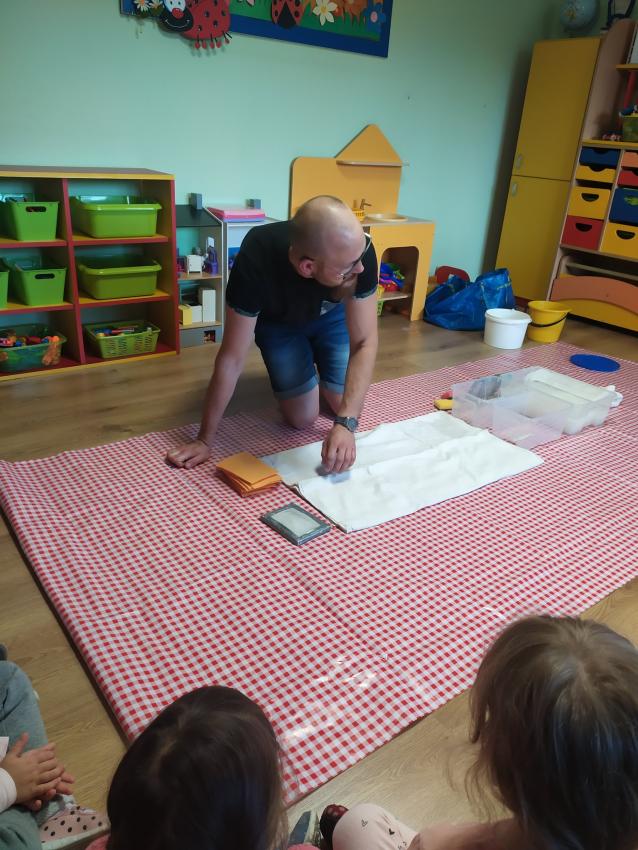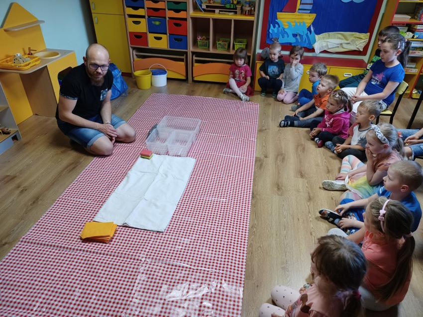 W poniedziałek po raz kolejny gościł u nas Pan Dzieciak. Tym razem rozmawialiśmy o papierze. Każdy chętny wyprodukował dla siebie karteczkę papieru czerpanego. Było to bardzo ciekawe doświadczenie!
