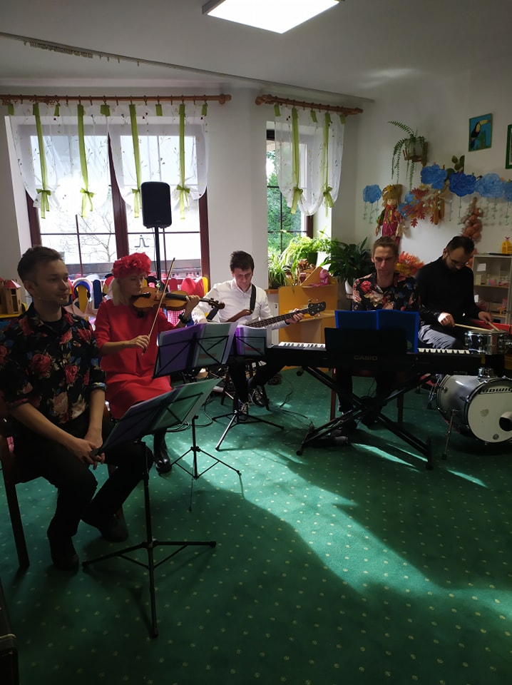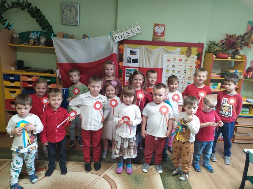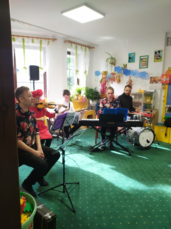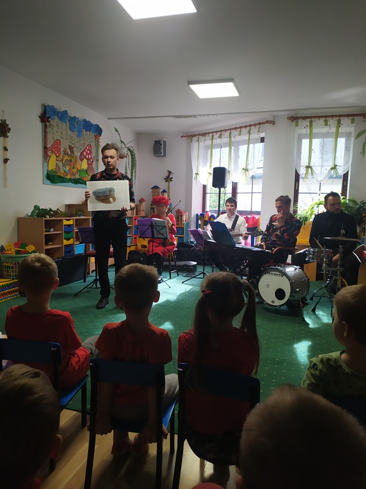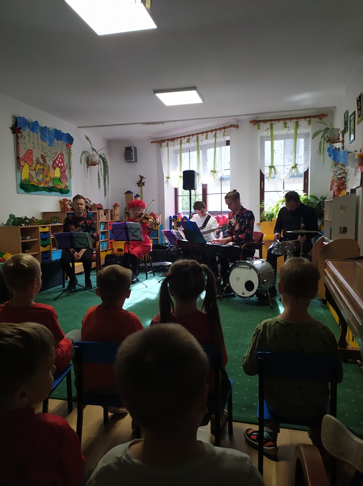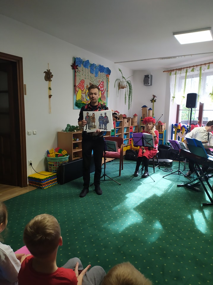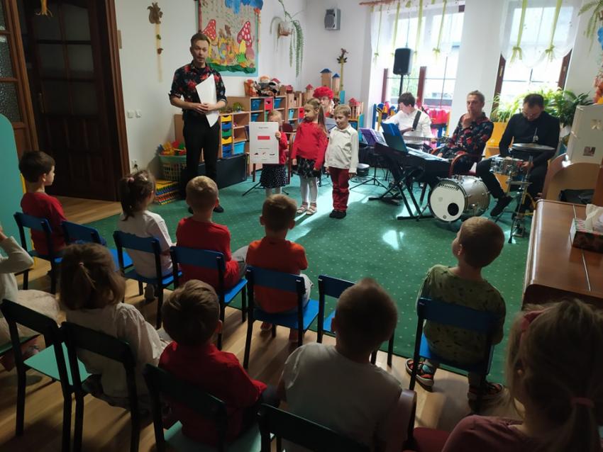 9.11. gościliśmy u nas muzyków z Mobilnej Filharmonii. Wspólnie wykonaliśmy kilka utworów patriotycznych i przypomnieliśmy sobie niektóre fakty historyczne związane z naszym narodowym Świętem Odzyskania Niepodległości. Podczas przygotowań do 11.11. odśpiewaliśmy również hymn Polski, a także wywiesiliśmy naszą flagę na budynku Przedszkola.