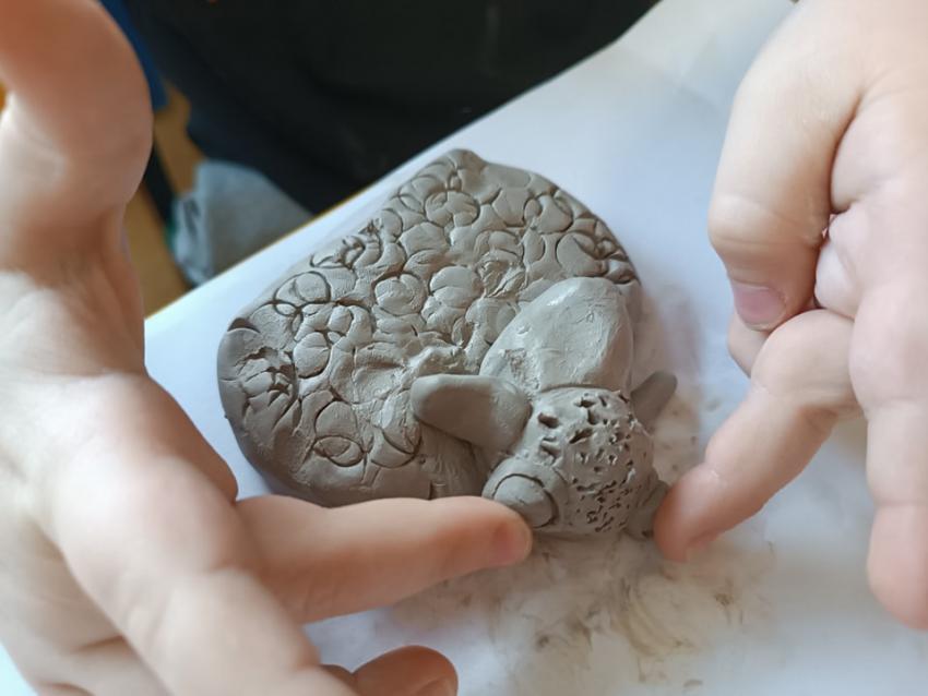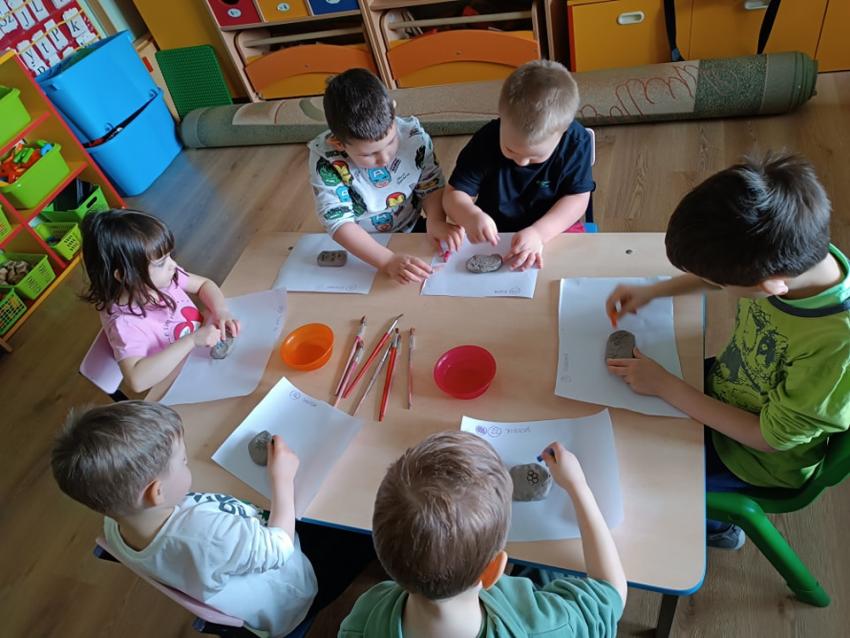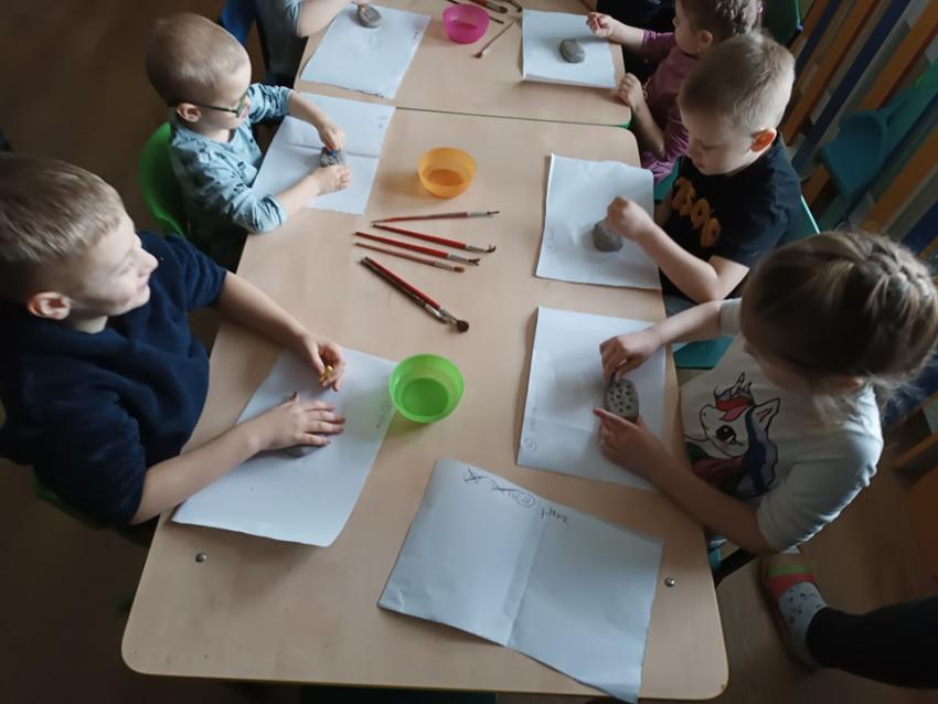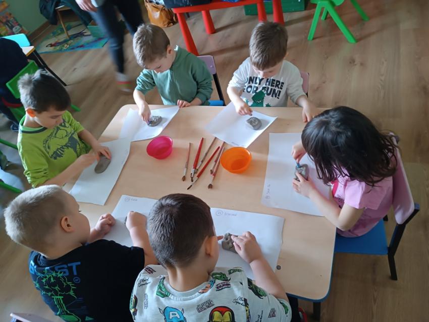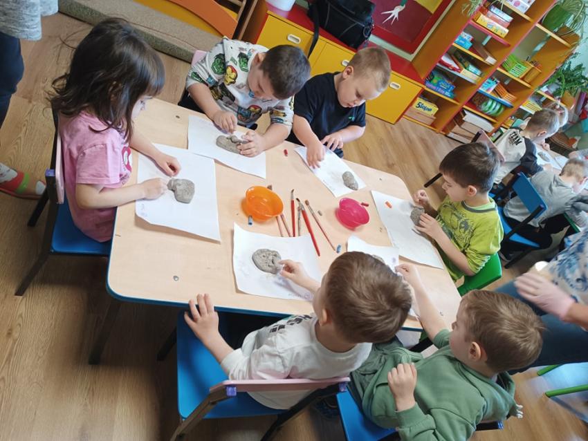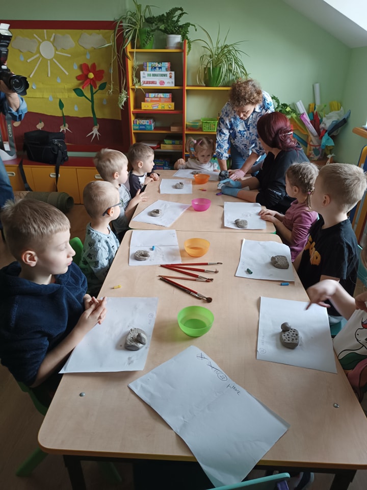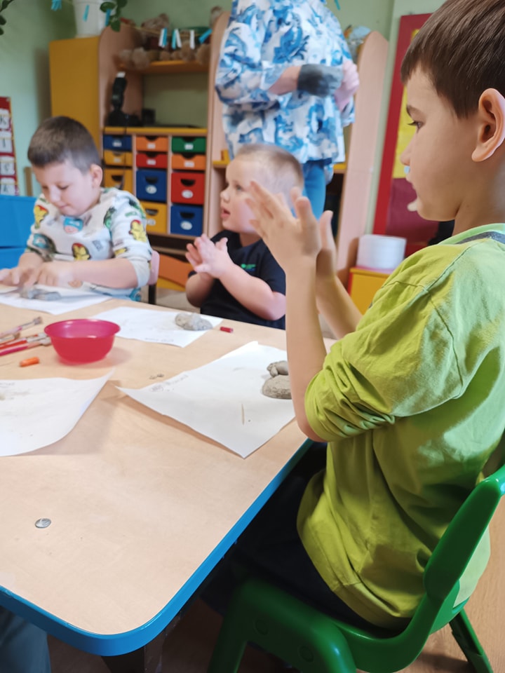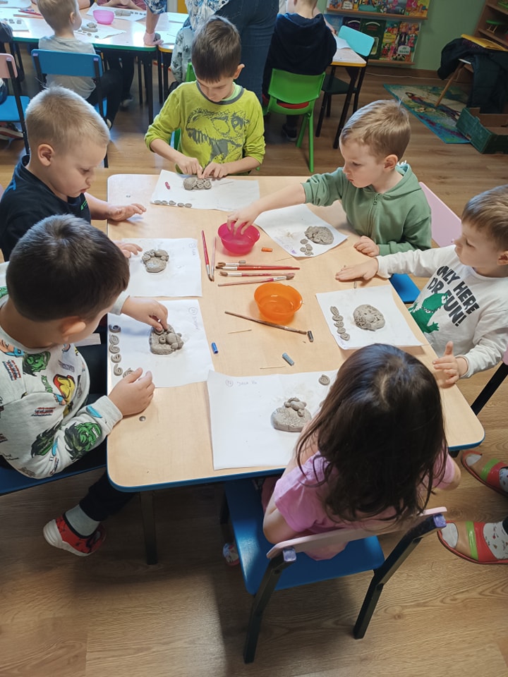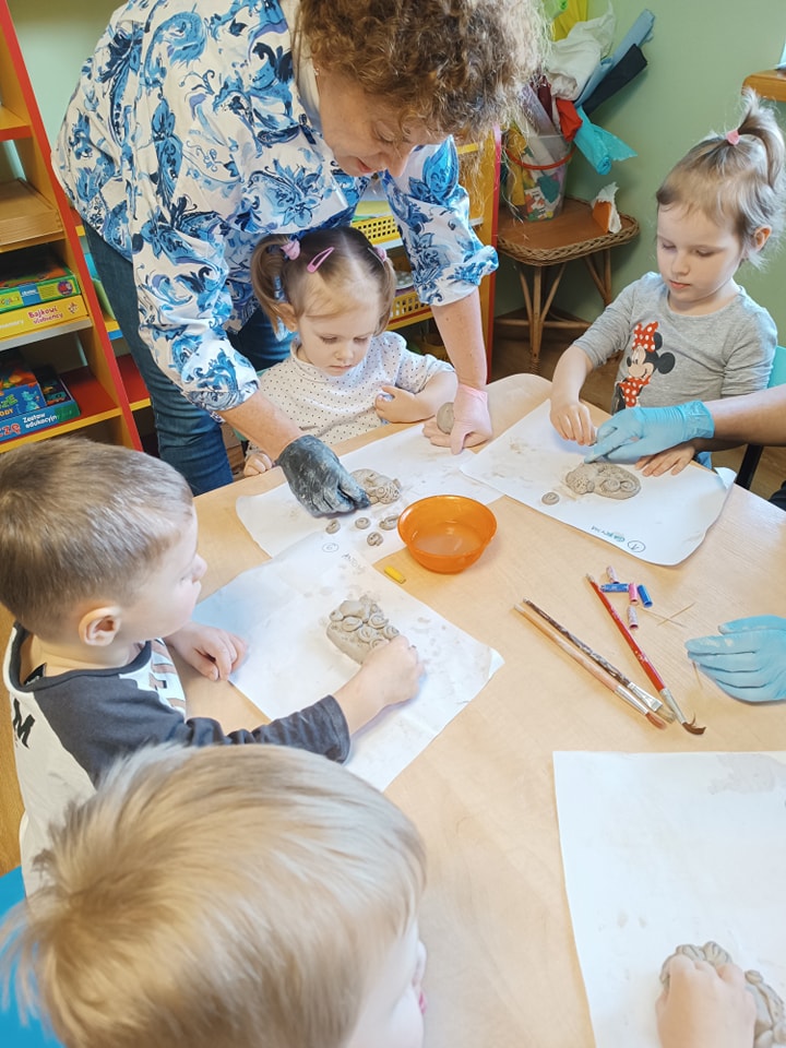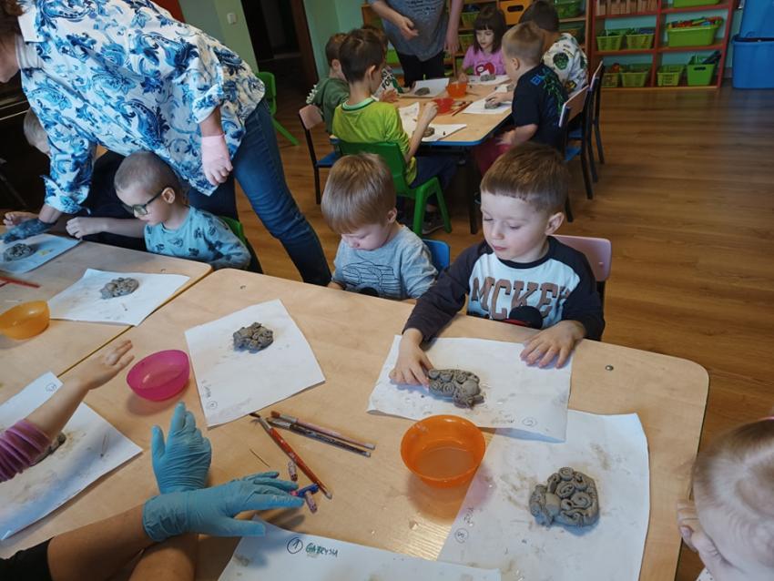 Po przerwie zagościły w naszym przedszkolu warsztaty ceramiczne. Dzieci pod kierunkiem pani prowadzącej wykonały przepiękne miseczki z barankami.