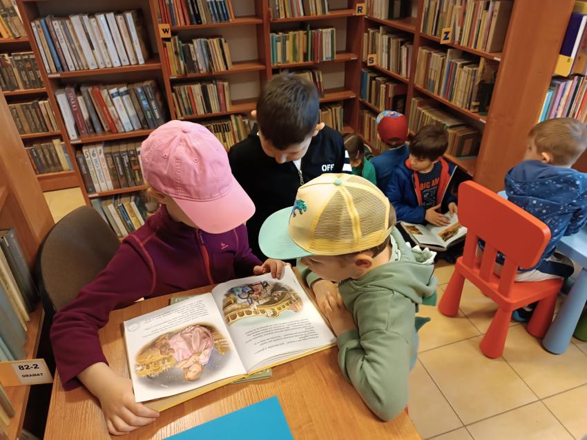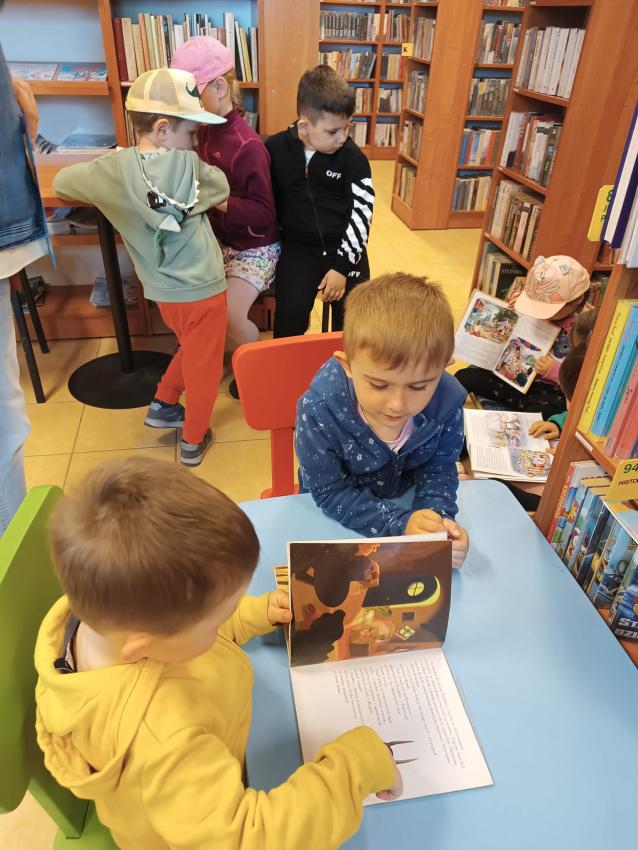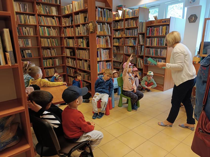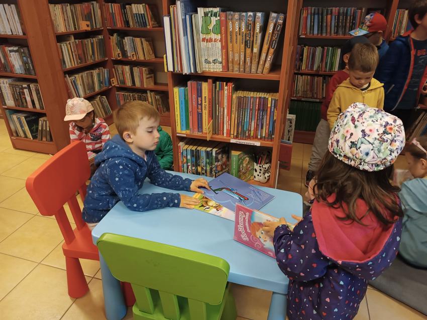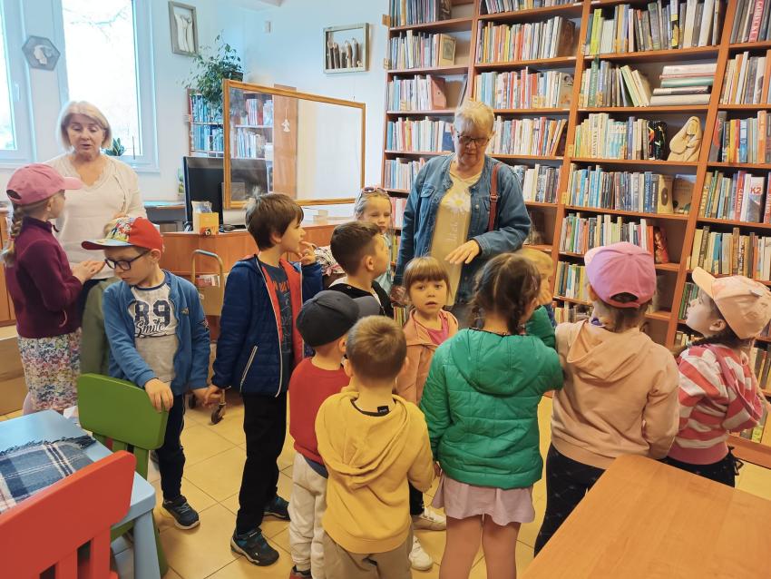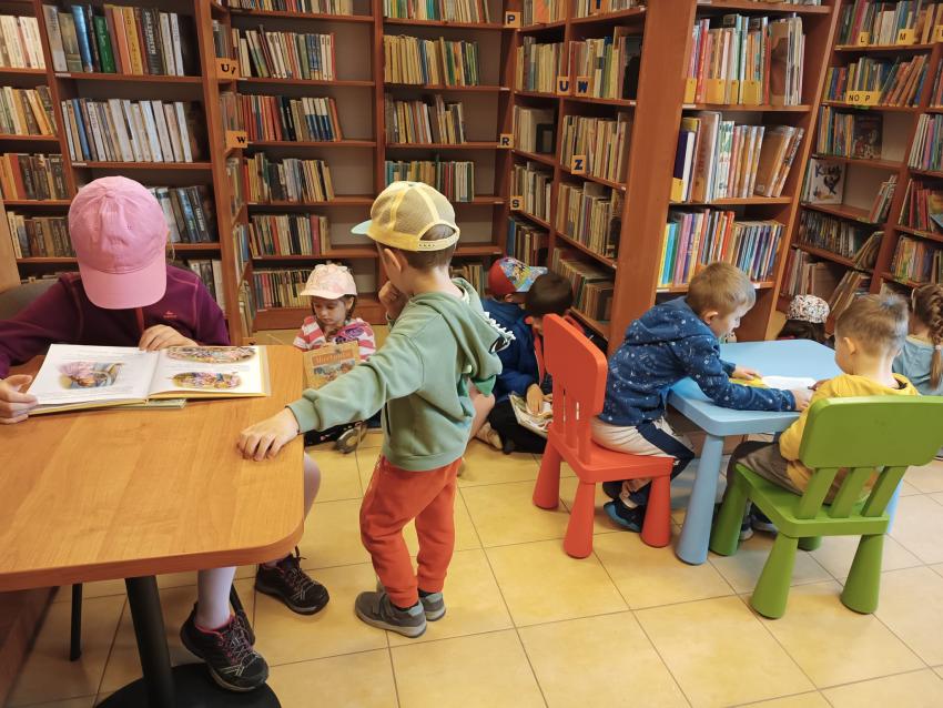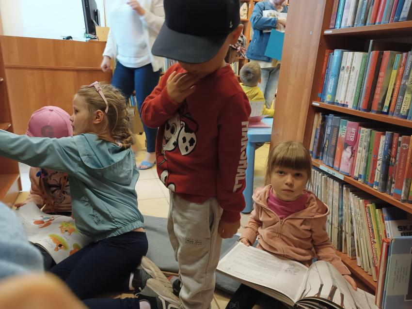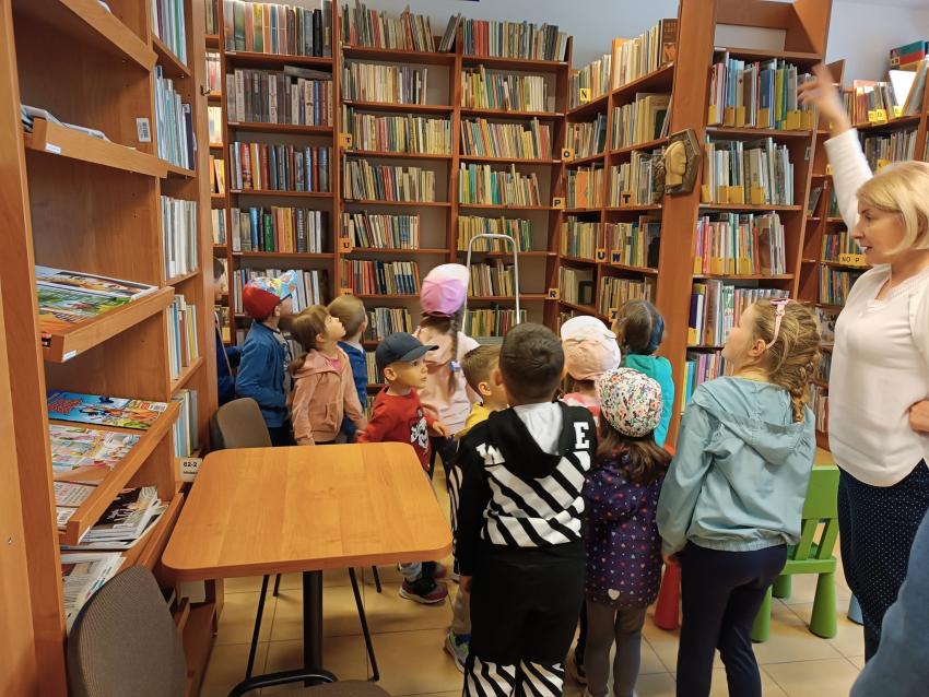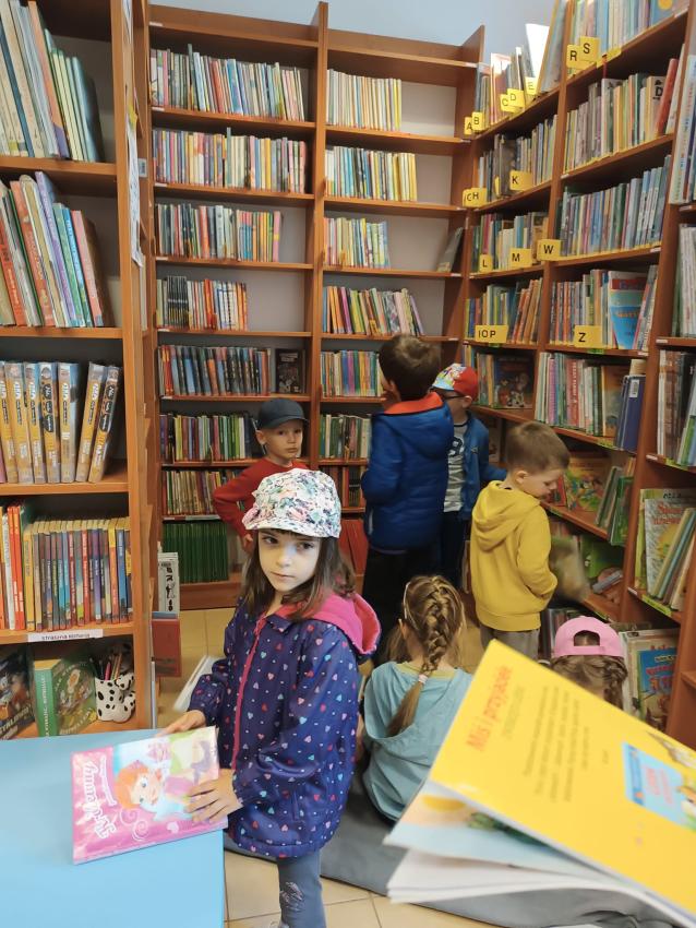 Średniaki i starszaki były na wycieczce w bibliotece przy ul. Walerego Sławka 10. Poznaliśmy zawód bibliotekarza, obejrzeliśmy różne zakamarki biblioteczne, widzieliśmy jak przebiega proces oddawania i wypożyczania książek, a także skorzystaliśmy z kącika czytelniczego. Wzięliśmy również udział w quizie na temat bohaterów bajkowych. Pani bibliotekarka zapewniła, że zawsze z radością oczekuje na dzieci z rodzicami i zaprasza do korzystania z filii 38, a także pozostałych.