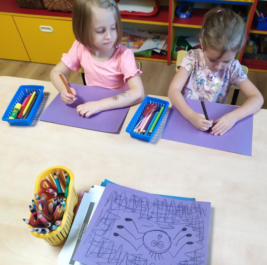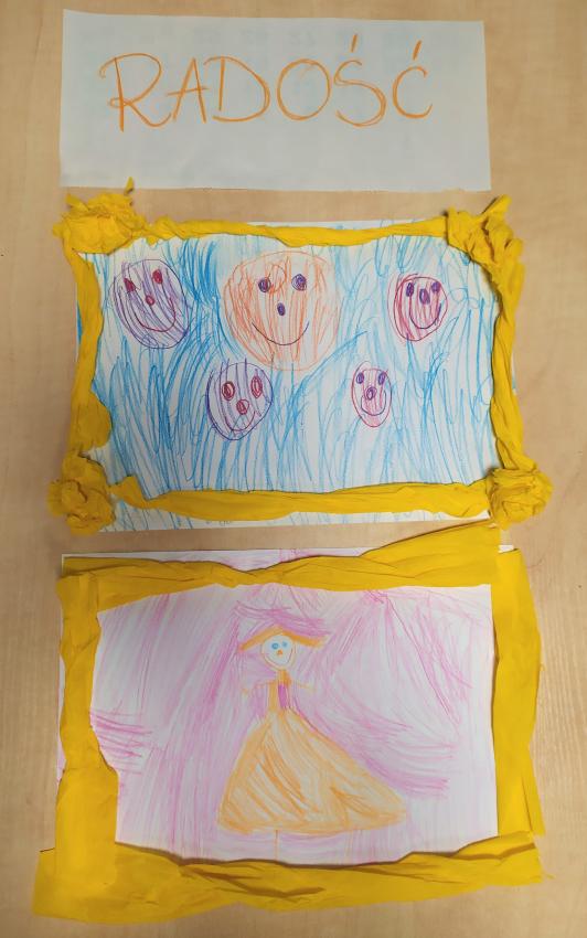 Tym razem w mocno okrojonym składzie, "Wróbelki" poznawały barwy i świat uczuć. Uczyliśmy się rozpoznawania różnych emocji, nazywaliśmy je, zastanawialiśmy się co chcą na powiedzieć. Poznawaliśmy też różne sposoby radzenia sobie ze złością i strachem - wiemy już, że nie każdy sposób radzenia sobie ze złością jest dobry. Przygotowaliśmy też specjalne pudełko, w którym zamknęliśmy nasze strachy. Nie zabrakło oczywiście matematyki - np. staraliśmy się tak poprzekładać jedzonko dla zwierząt, żeby każde miało tyle samo i było zadowolone. Powstały również piękne portrety Radości.