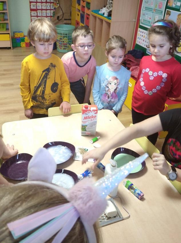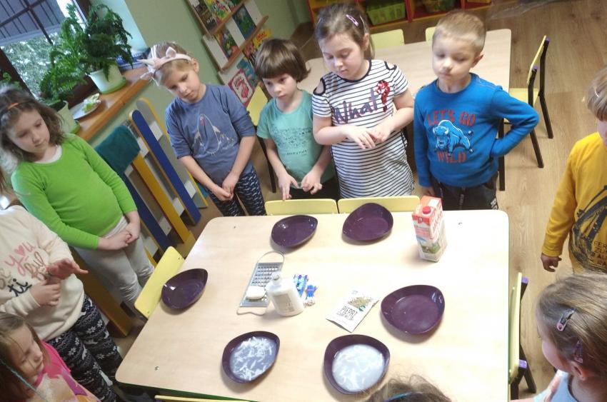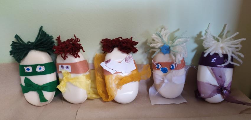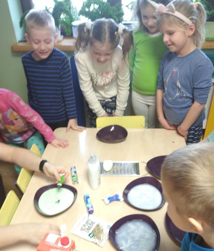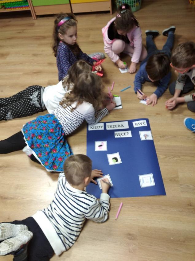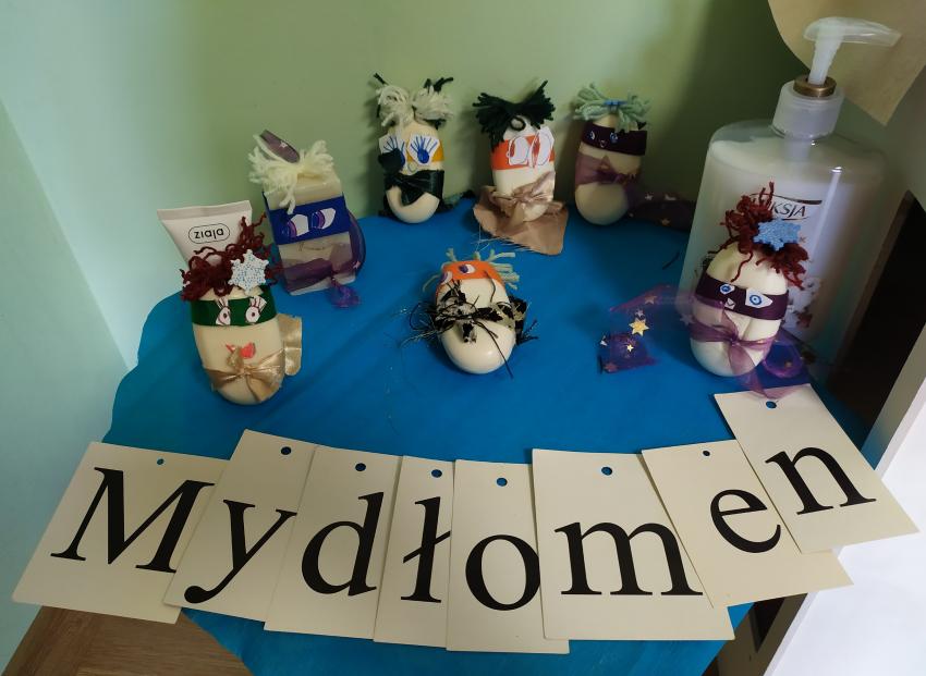 W ostatnim tygodniu stycznia "Papużki" i "Wróbelki" realizowały jeden z tematów programu Rossmann - "Czyściochowe Przedszkole", dotyczący higieny rąk. Wiemy już kiedy, w jaki sposób i dlaczego trzeba myć ręce. Staramy się też na co dzień oszczędzać wodę. Dzięki doświadczeniom dowiedzieliśmy się jak działa mydło oraz że lepiej jest myć ręce w ciepłej wodzie niż w zimnej. Dużą frajdę sprawiło nam wykonanie Mydłomenów - bohaterów z kostek mydła. W naszej grupie powstał również ogromny eko-kontrabas, który bierze udział w ogólnopolskim konkursie na eko-instrument.