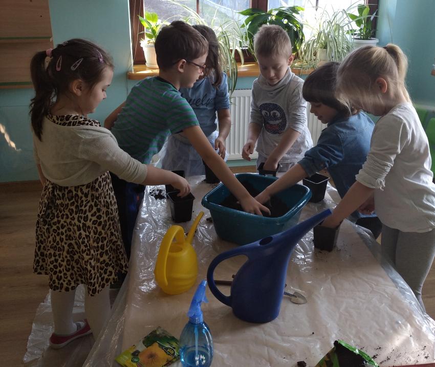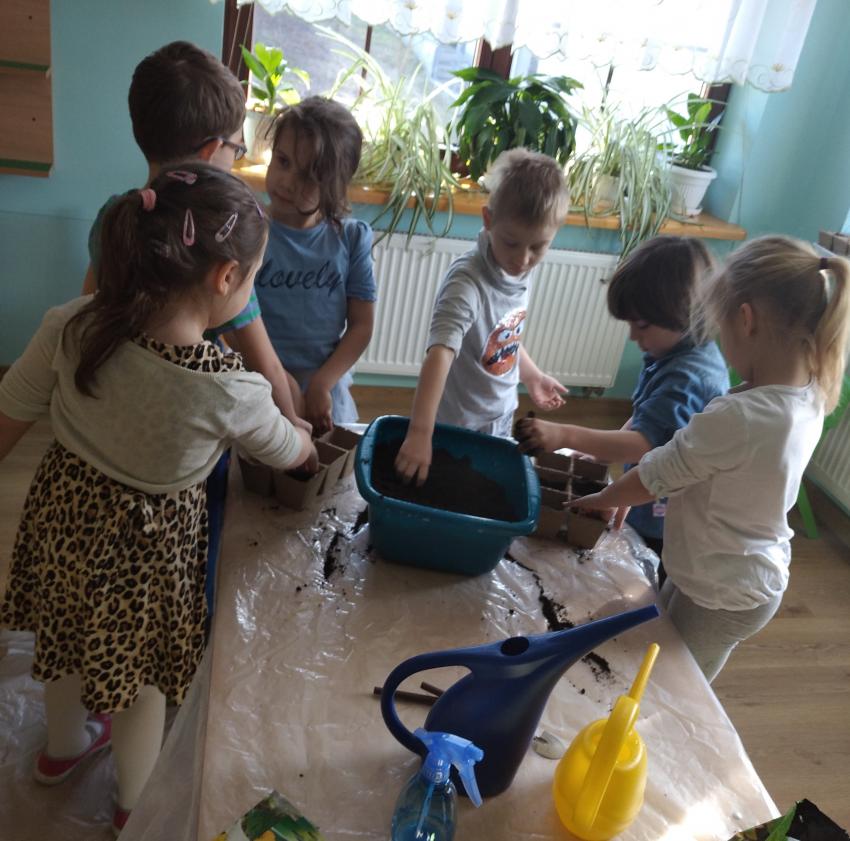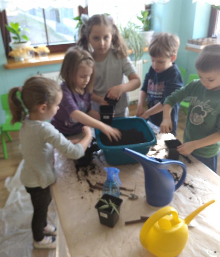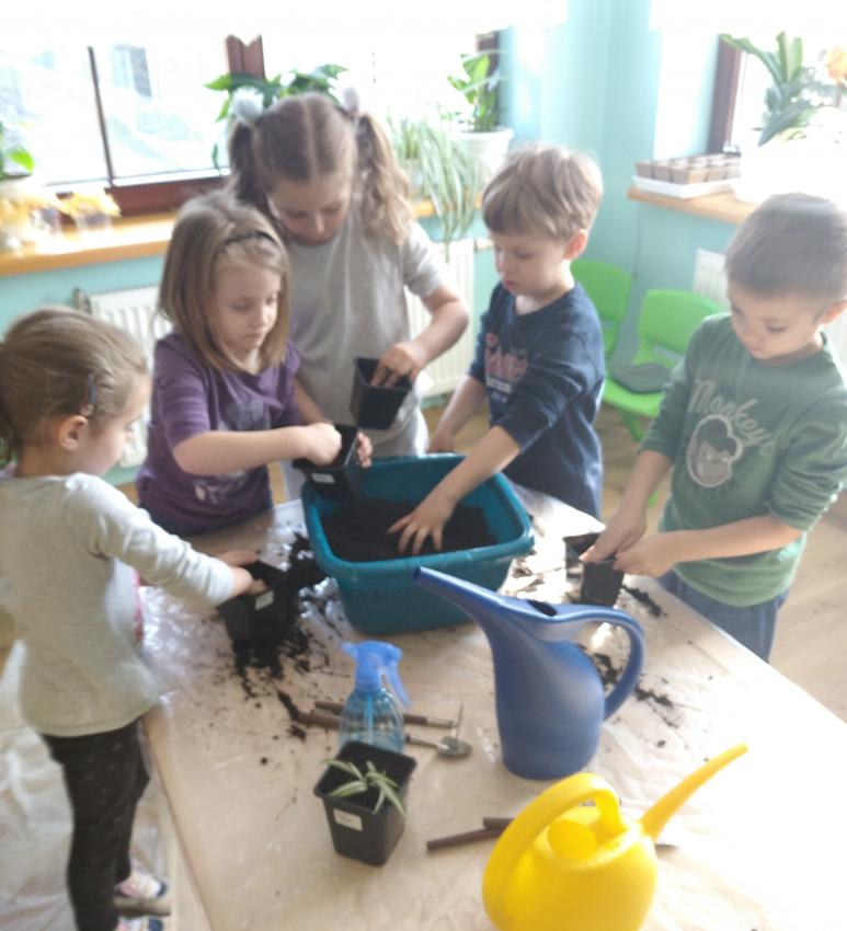 "Wróbelki" i "Papużki" założyły wiosenny ogródek w sali będący namiastką tej uroczej pory roku, na którą tak wszyscy czekamy. Ustaliliśmy kolejność działań, przypomnieliśmy od czego zależy wzrost roślin i zabraliśmy się do pracy. Największą niespodzianką było sadzenie zielistek z sadzonek rozłogowych. Każdy przedszkolak swoją zielistkę zabrał do domu. Jej zaletą jest to, że oczyszcza powietrze ze szkodliwych substancji i bakterii chorobotwórczych i jest bardzo łatwa w uprawie.