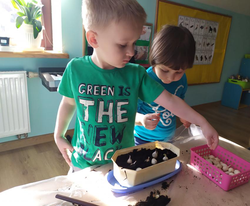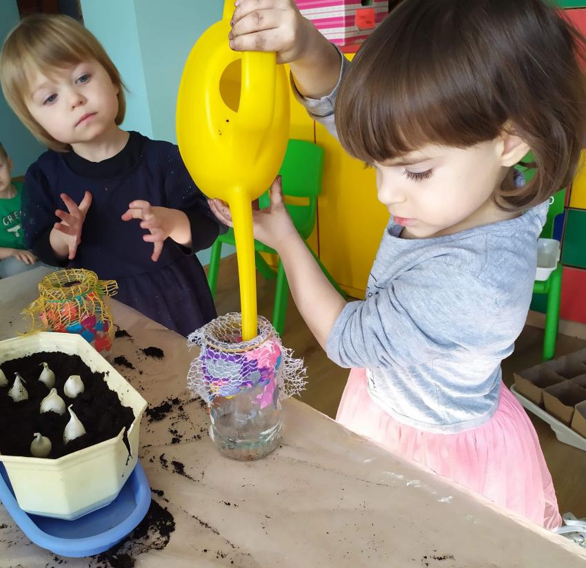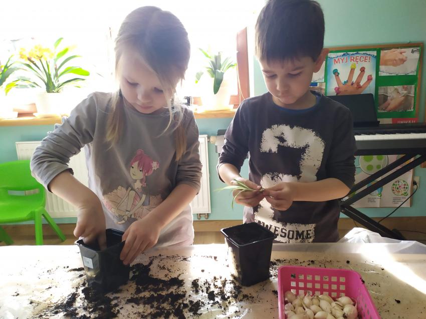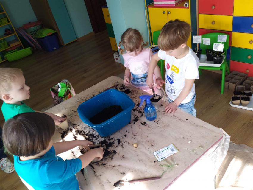 W minionym tygodniu dzieci z grupy „Biedroneczek” zaprosiły do przedszkola wiosnę przez stworzenie zielonego kącika. Dowiedziały się, jakie są etapy sadzenia i siania roślin oraz czego potrzebują rośliny, aby rosnąć. Zasadziły zielistka z sadzonek rozłogowych, którego zabrały do domu. Zabawa była wyśmienita, pełna wrażeń i bogata o nowe doświadczenia i wiadomości.