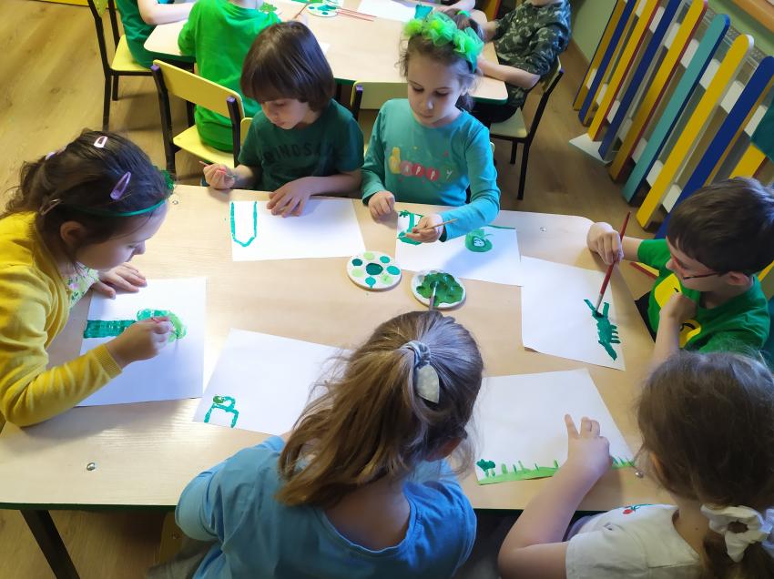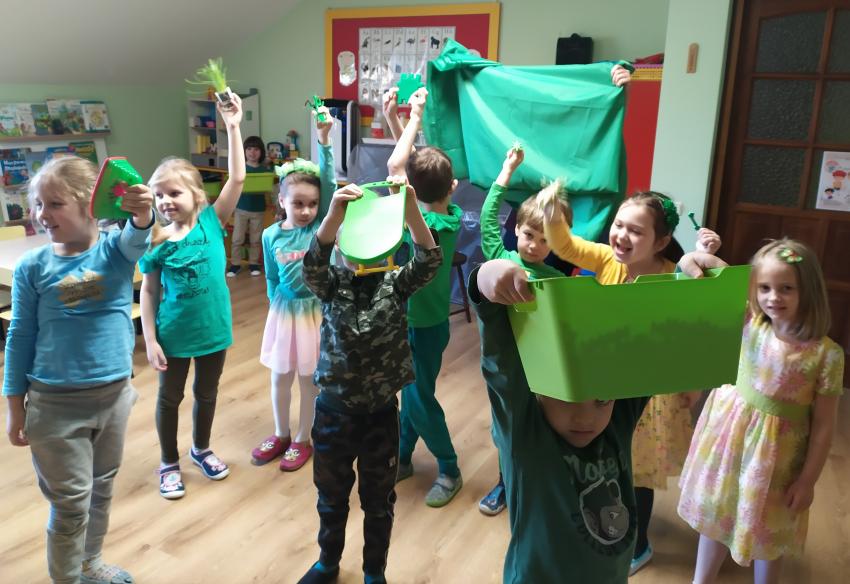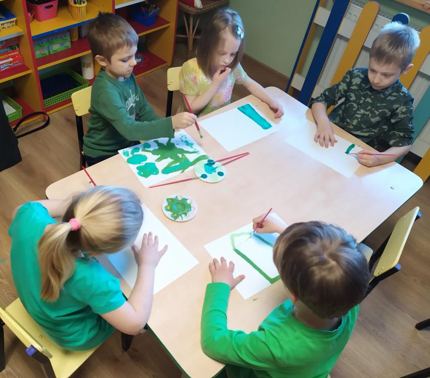 W tym roku wiosnę przywitaliśmy Dniem Zielonym. Byliśmy ubrani na zielono, mieliśmy różne zabawy związane z tym kolorem, wykonaliśmy zielone prace plastyczne, a nawet wszystkie nasze posiłki były zielone!