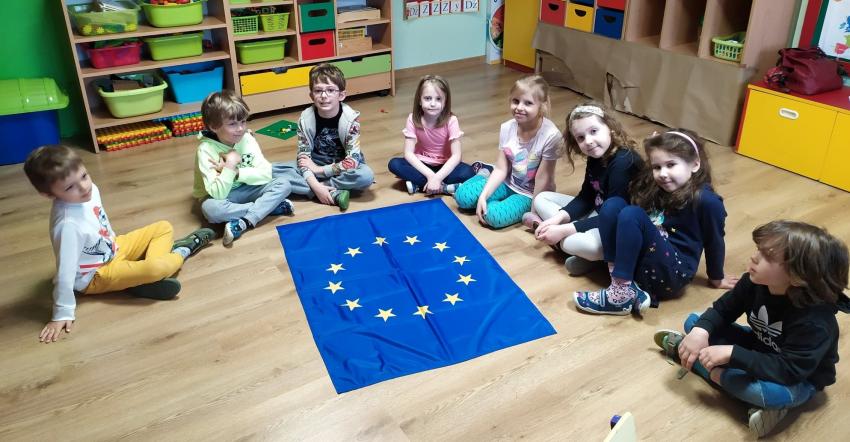 W ostatnim tygodniu kwietnia "Papużki" i "Wróbelki" przygotowywały się do majowych świąt narodowych - utrwalały symbole Polski, poznawały naszą stolicę i Legendę o Syrence, zdobywały nowe wiadomości o Unii Europejskiej. Wykorzystaliśmy też słoneczną pogodę na ruchowe zabawy na świeżym powietrzu.