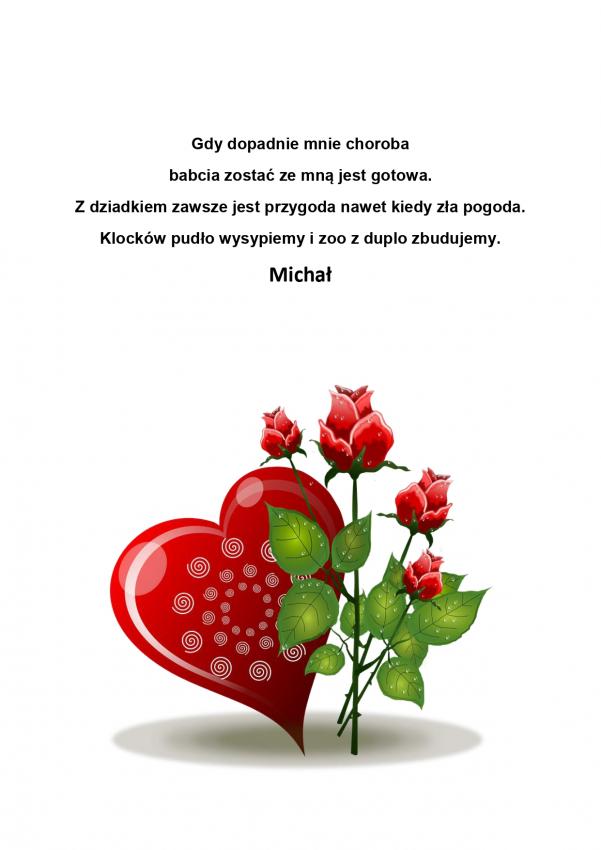 W tym roku nasze Przedszkolaki w ramach konkursu rodzinnego przygotowały wierszowane życzenia dla Babć i Dziadziusiów. Będą prezentowane podczas występu, ale z racji kwarantanny będzie on przeniesiony dopiero na luty. Ponieważ Dzień Babci i Dziadzia jest już w ten weekend, poniżej przedstawiamy wszystkie dzieła, które dotarły do Przedszkola. Każdy z wierszy jest oryginalny i piękny! Gratulujemy ich Autorom, a Babciom i Dziadziom życzymy, by wszystkie zawarte w nich słowa się spełniły!