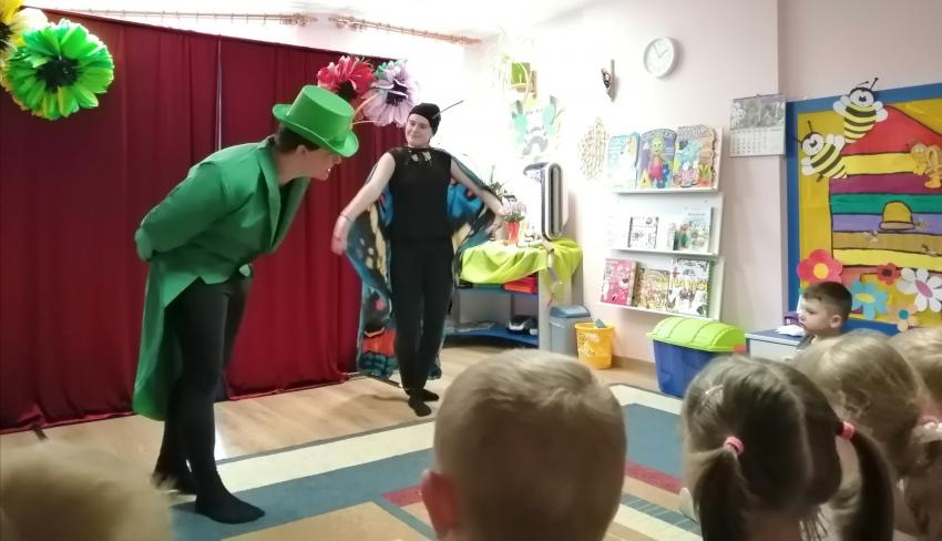 W poniedziałek nasze przedszkole odwiedzili aktorzy z Teatru Stańczyk z przepięknym przedstawieniem pt. „Gąsienica Matylda – co piszczy w trawie”. Bajka pełna morałów dotyczących samoakceptacji. Tytułowa gąsienica Matylda, aby stać się przepięknym motylem musi najpierw zrozumieć, że jej pięknem nie są kolorowe skrzydła, ale jej zachowanie i wnętrze.Dodatkowym atutem była sceneria i piękne kostiumy aktorów, którzy wcielali się w rolę mieszkańców łąki. Występ bardzo podobał się przedszkolakom i sprawił im mnóstwo radości.